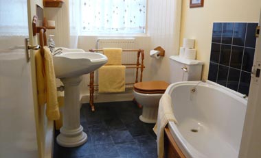 Bathroom - Steel bath with a power shower above, basin and wc. Auxilliary speakers from the CD player so you can enjoy relaxing music in the bath.